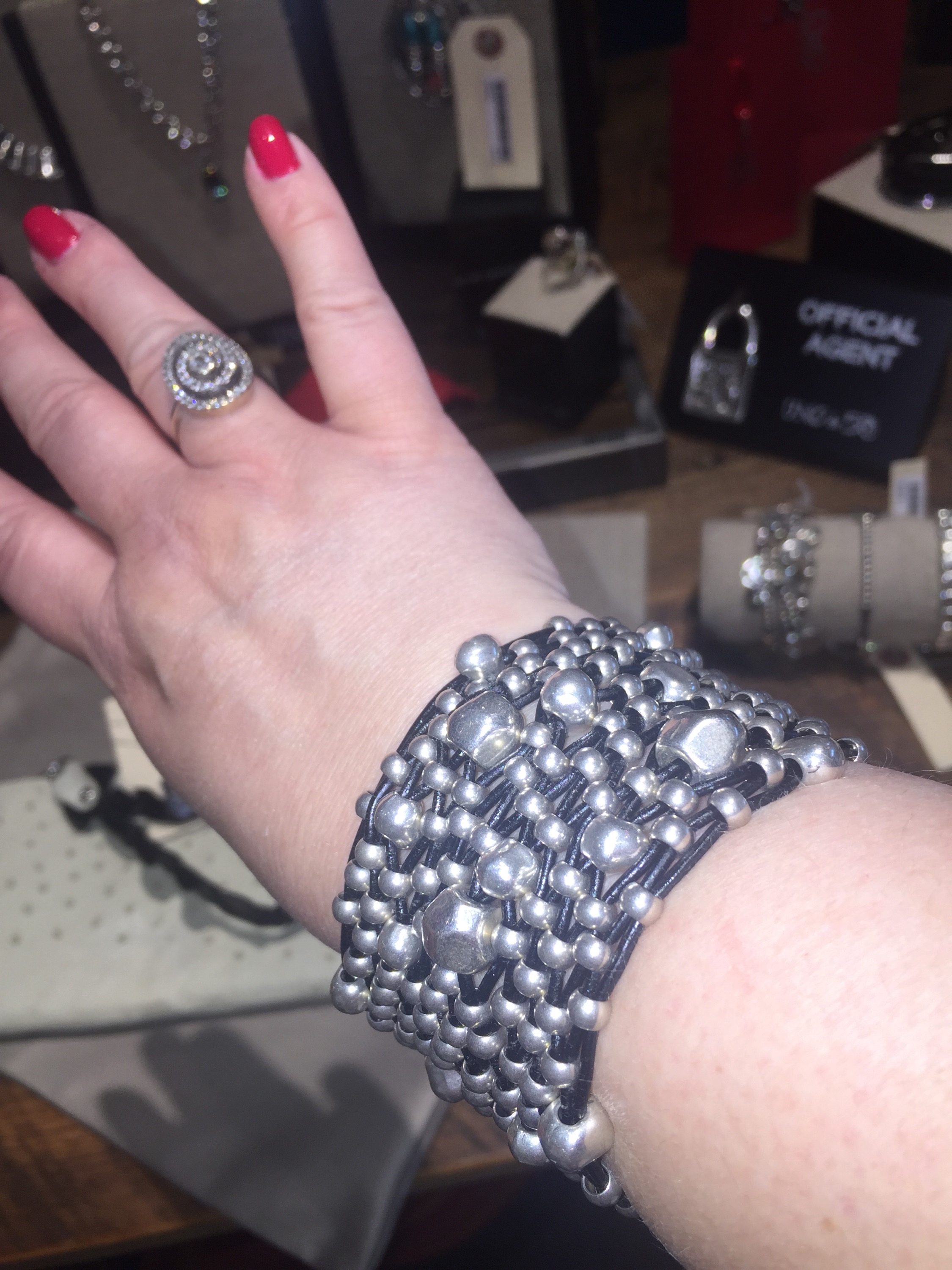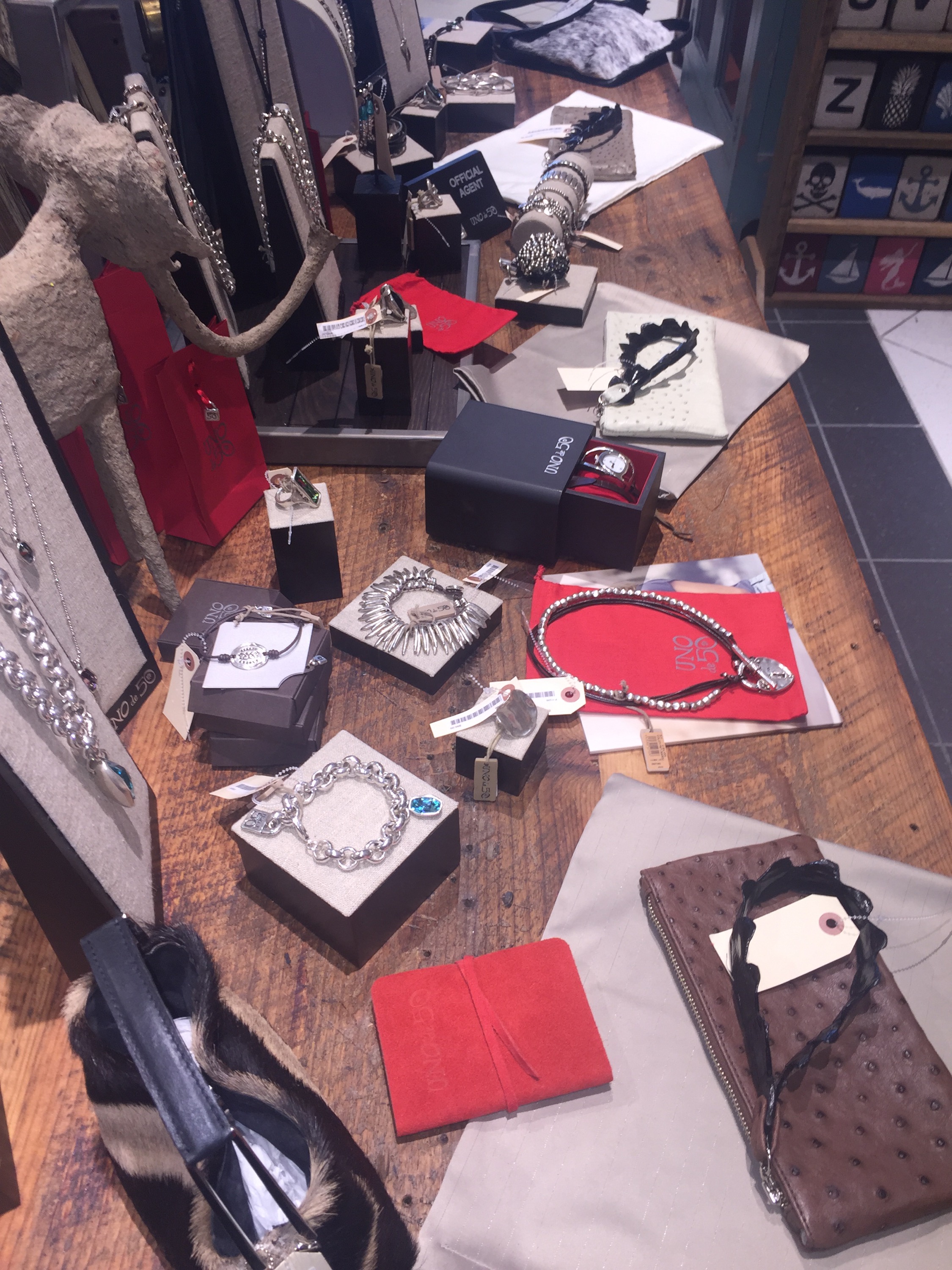I was at Setting the Space. An interior design store. Strange? Not really. Setting the Space in Hingham, MA is very cool store where you can custom order furniture, pick up fun accessories for you home…and for youself. Think of it as a place to Set Your Style. The jewelry line, Uno de 50, is as unique as this store.