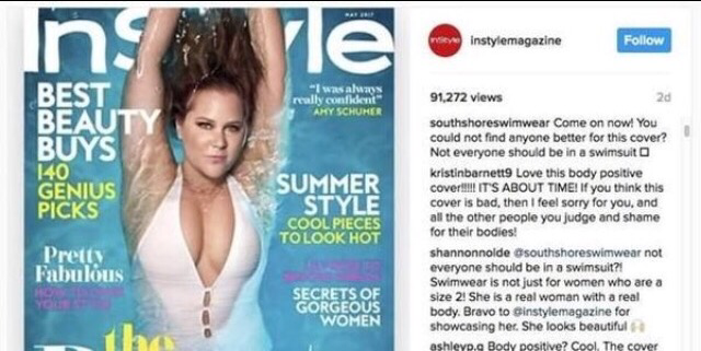 A Massachusetts swimwear designer made a huge splash after writing insults on In Style magazine’s Instagram account because of their choice for the May cover girl, Amy Schumer.