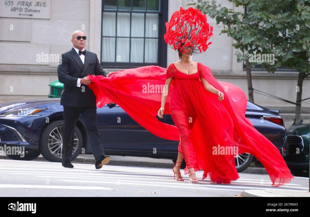 But it makes a glorious return (along with the bird on her head) and is revamped for the Met Gala when the up-and-coming designer who is supposed to make her gala gown falls short of the task.