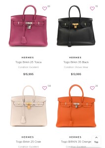 So yes, the online sellers have increased (and available) options for those who don’t want to go to the boutiquie. Tonello says it’s had a BIG effect on the allure of the Birkin and the Kelly bags: